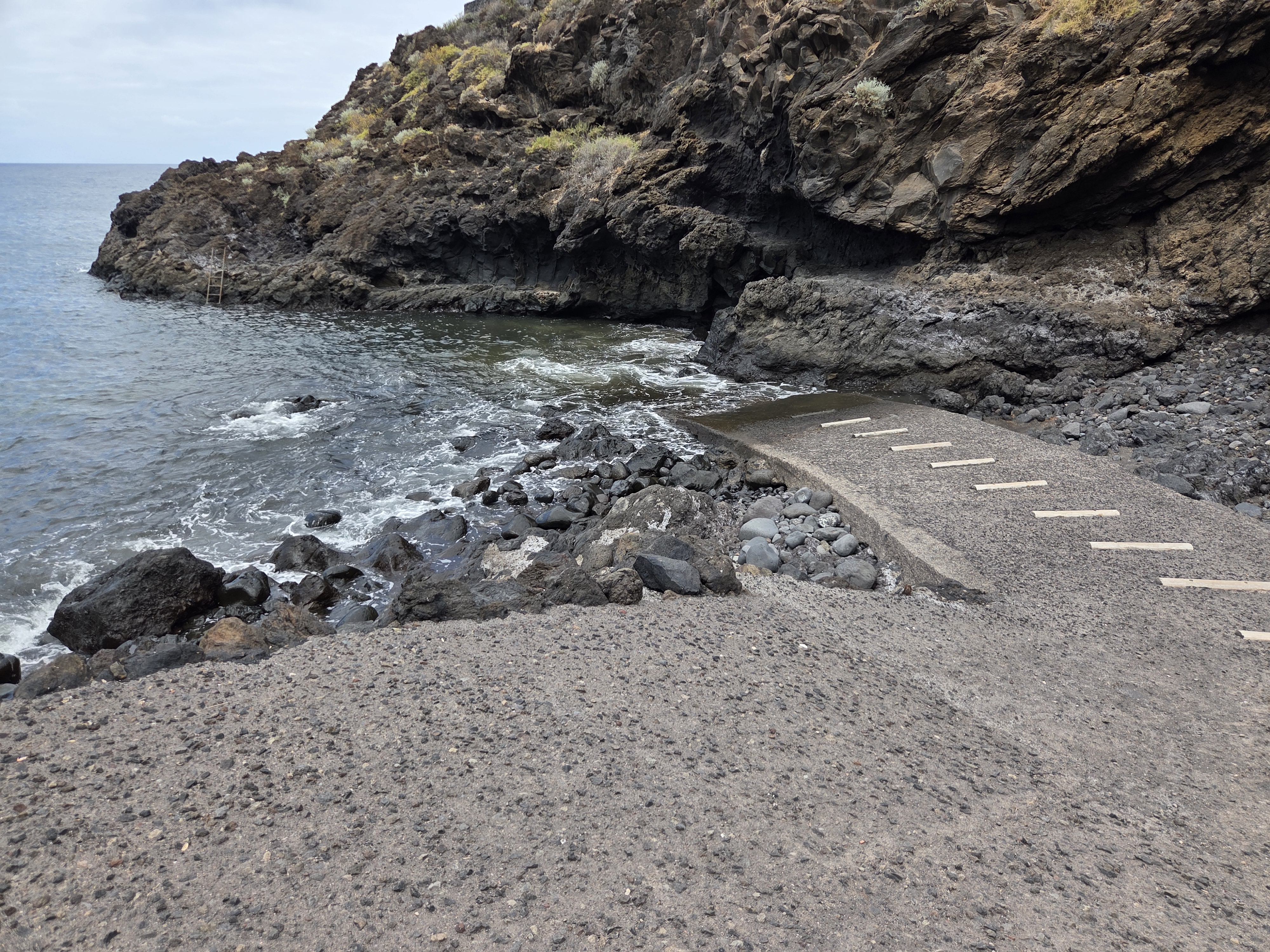 En algunos puntos existen rampas que facilitan la entrada al agua cuando el mar está en calma. Extrema la precaución: las condiciones cambian rápido y el oleaje puede ser fuerte.