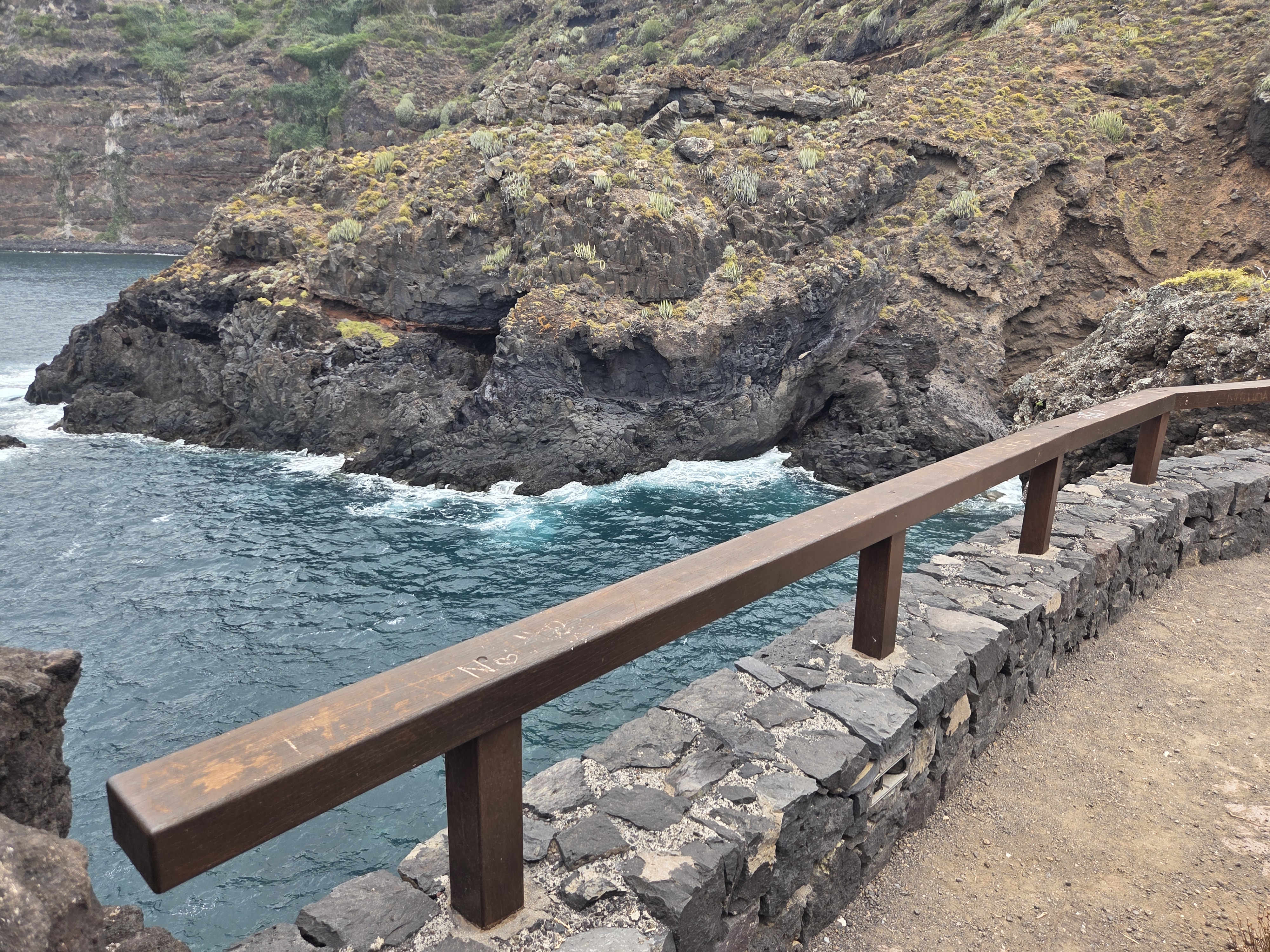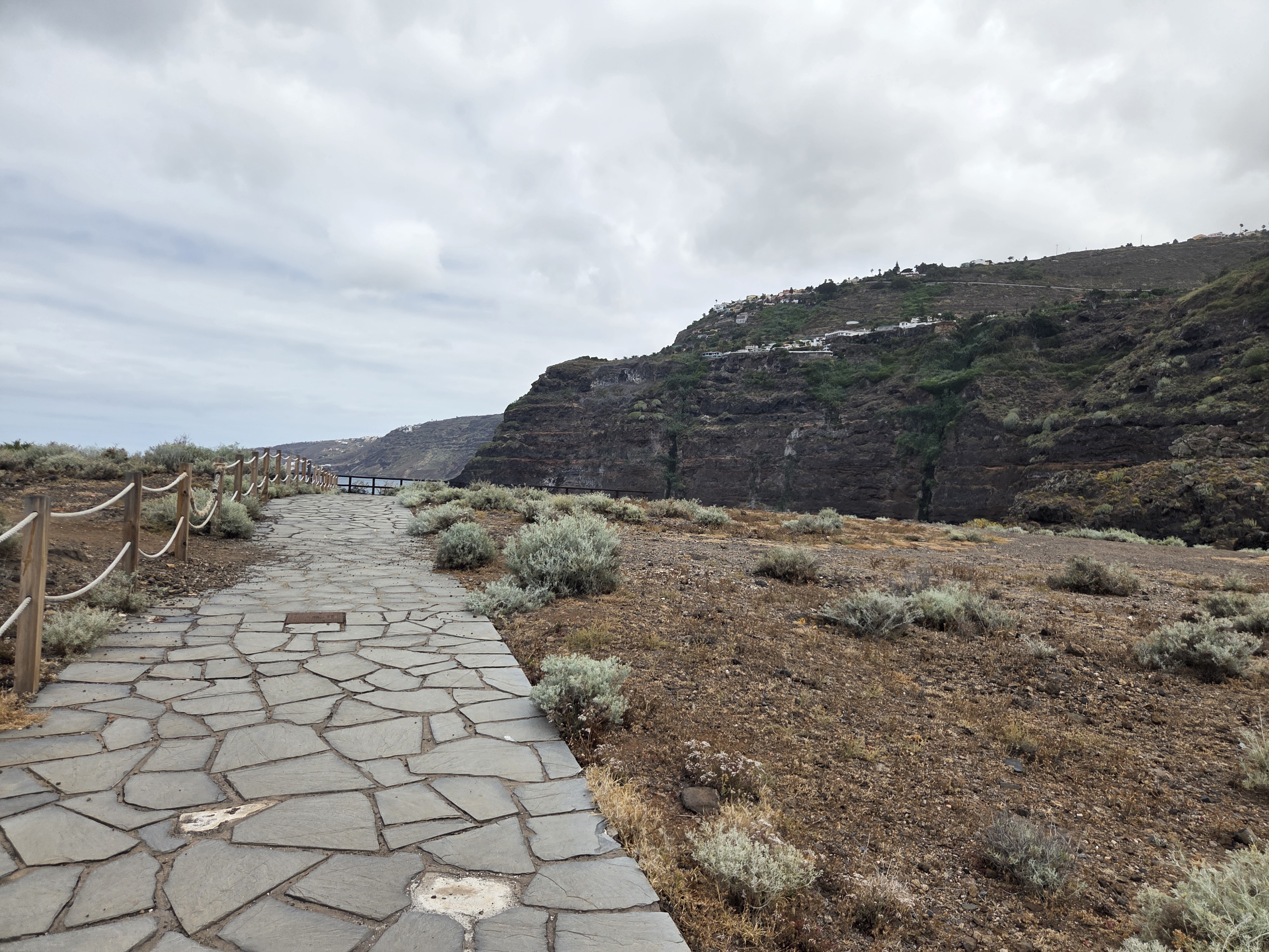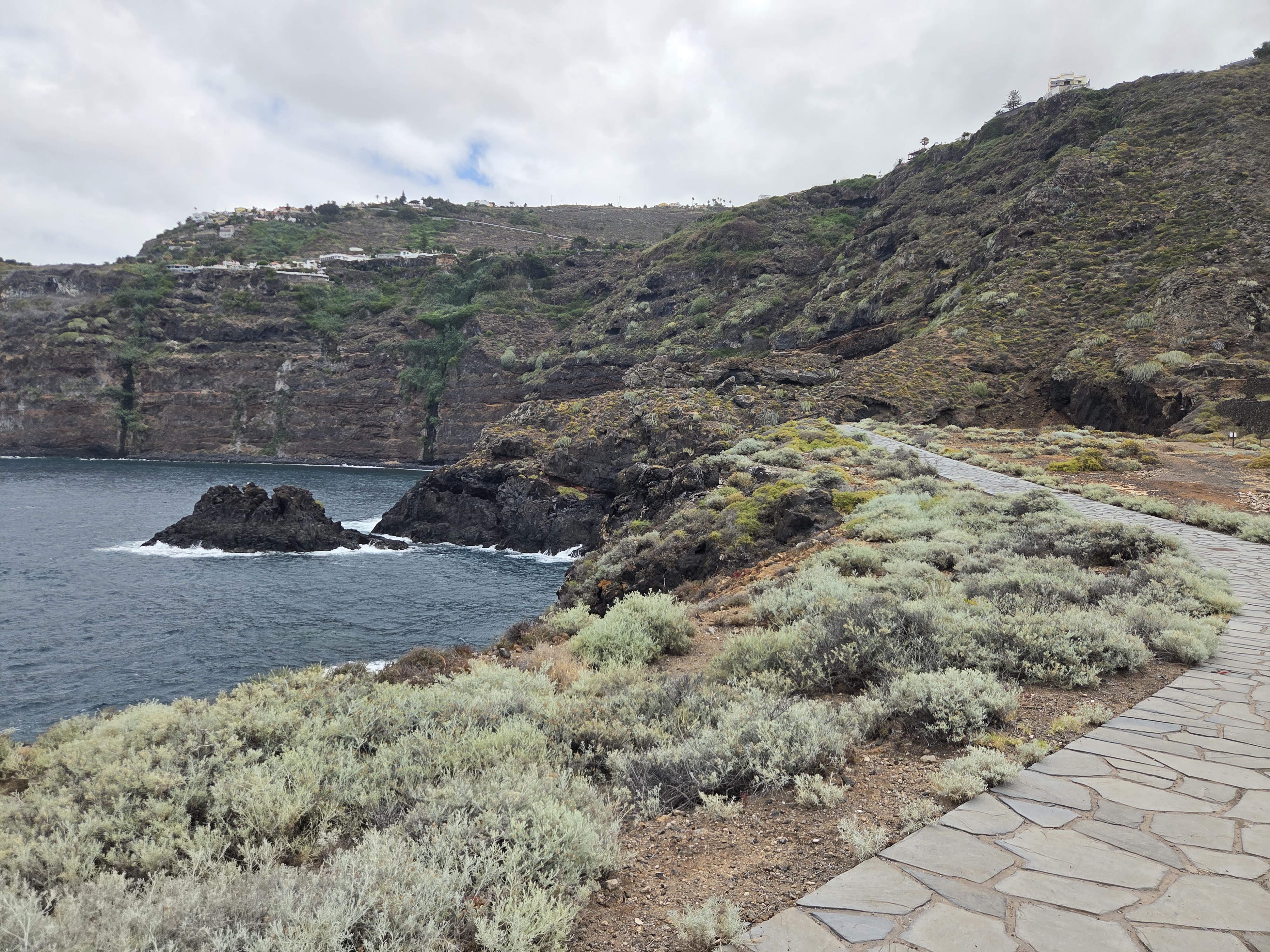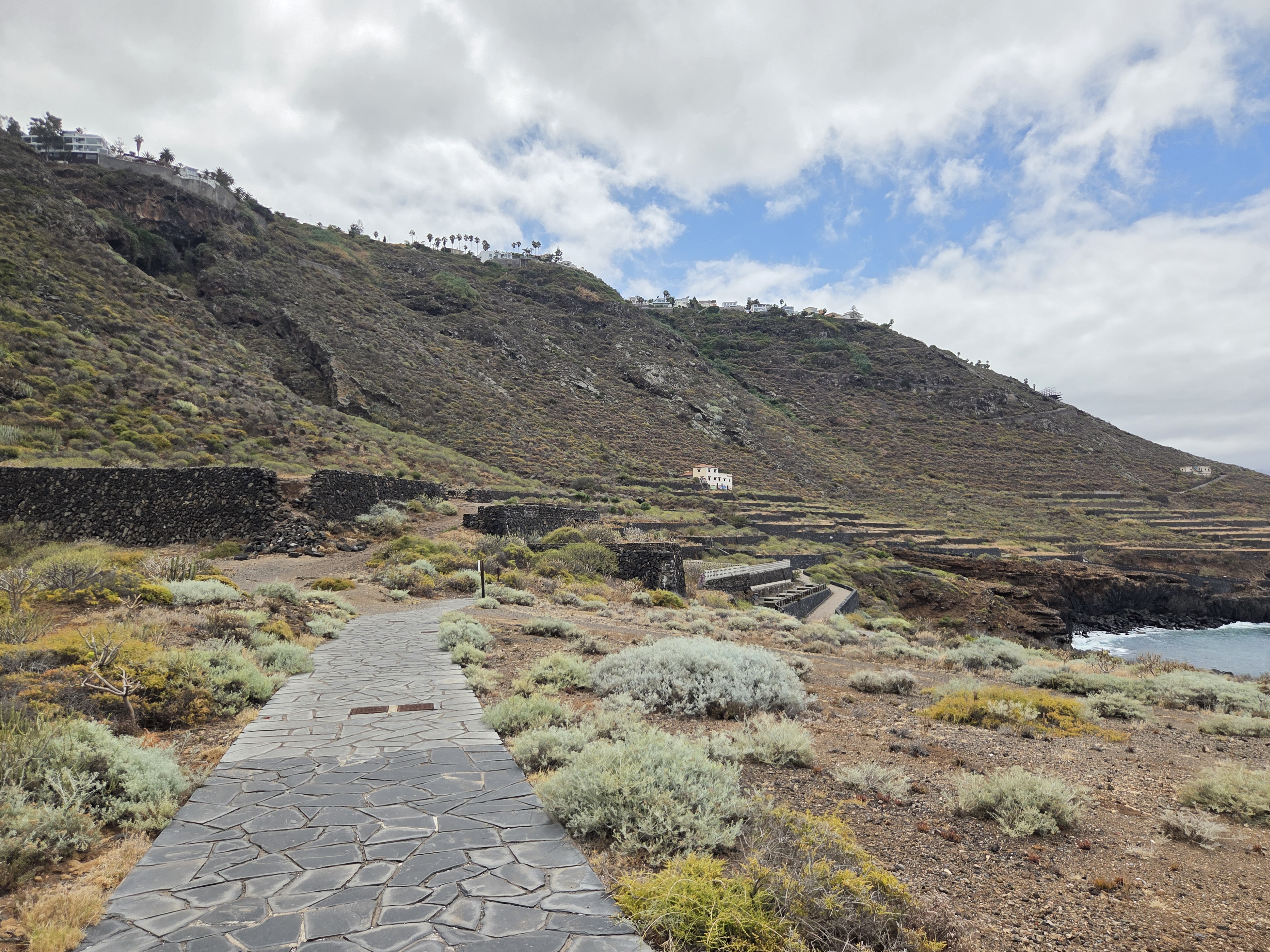 Algunos tramos son auténticos paseos, con muros de piedra volcánica que protegen del viento y abren la vista hacia el mar.