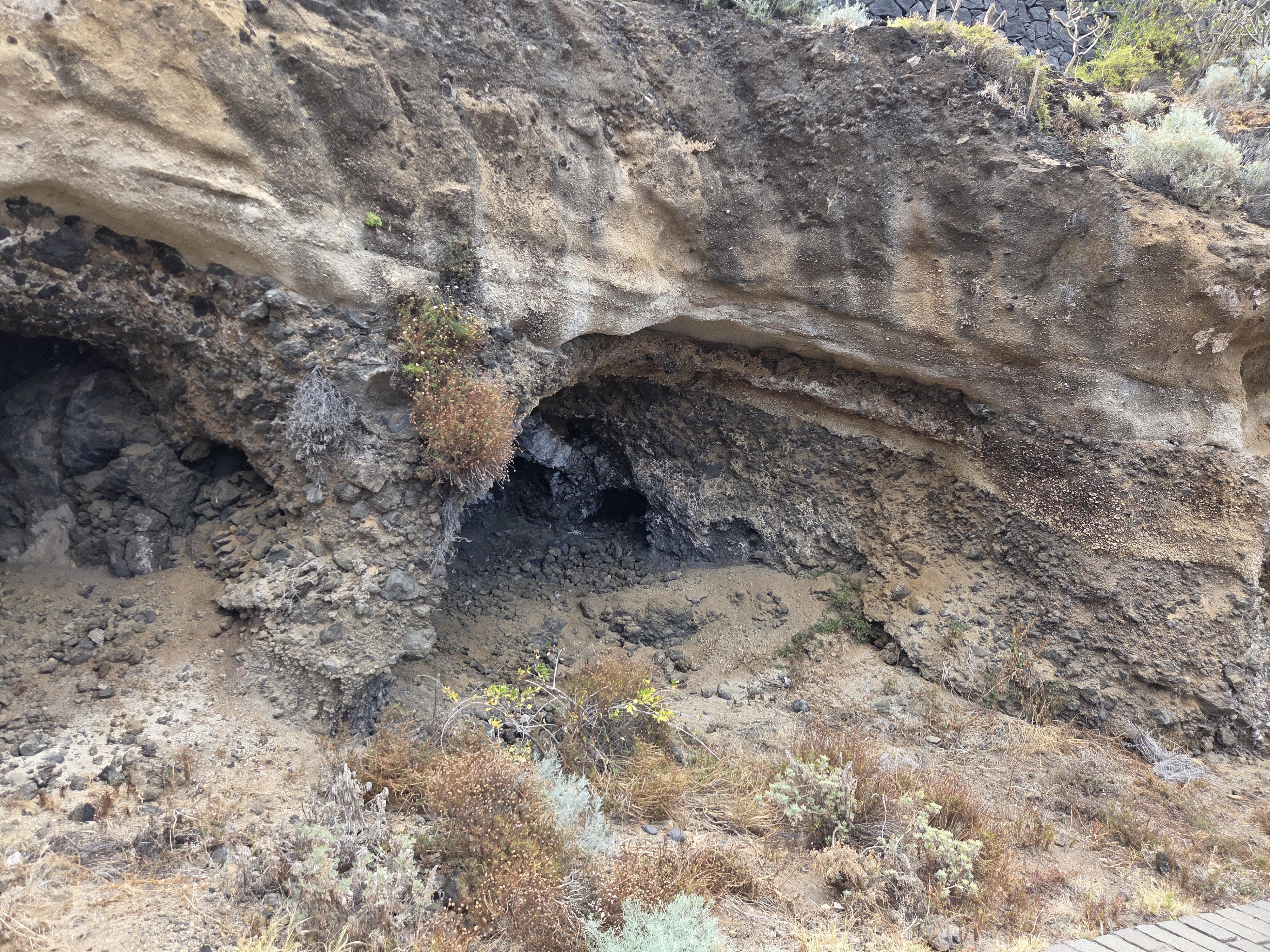 En los taludes se aprecian pequeñas cuevas y estratos de distintas erupciones, un auténtico libro abierto de vulcanismo costero.