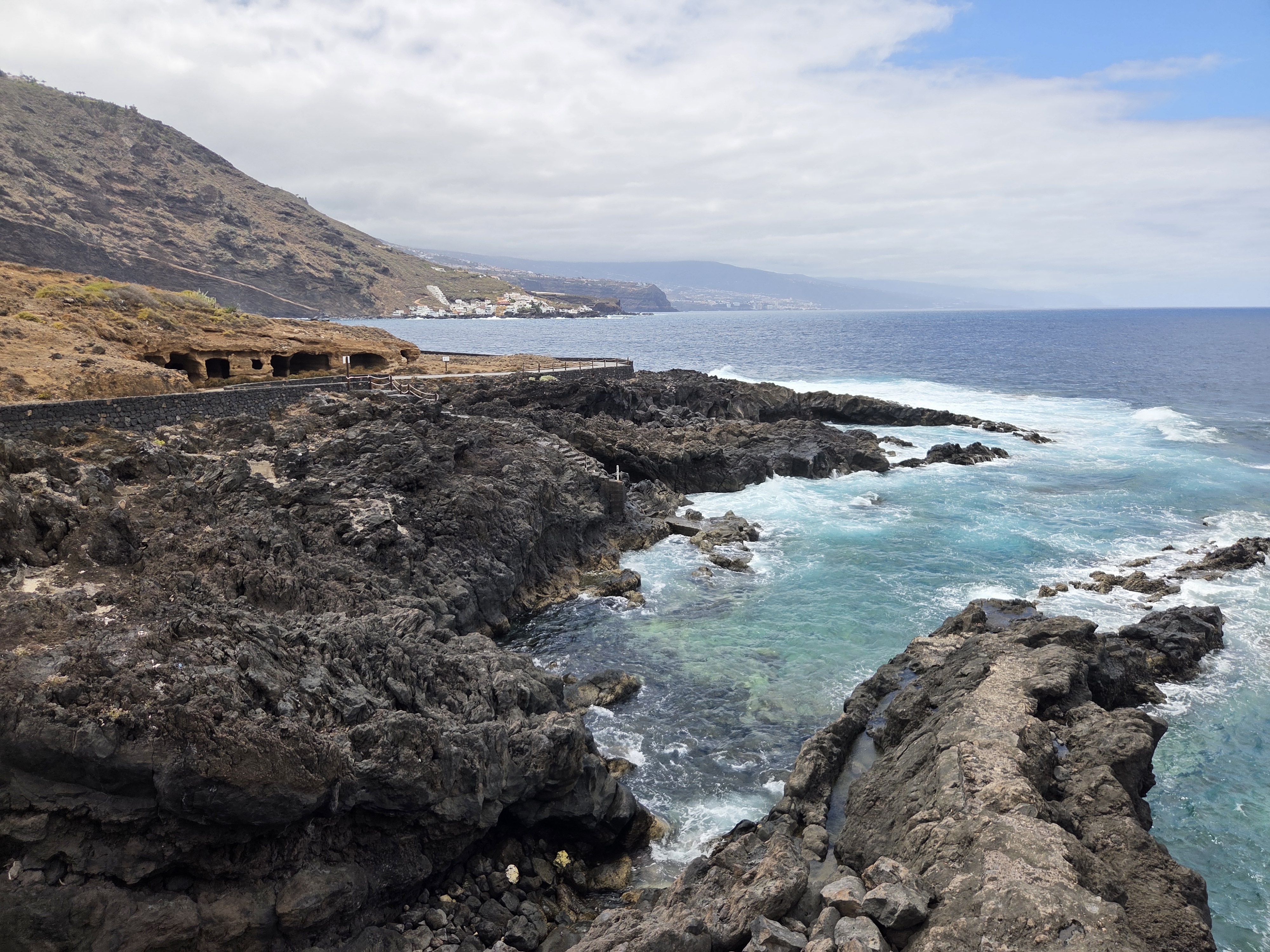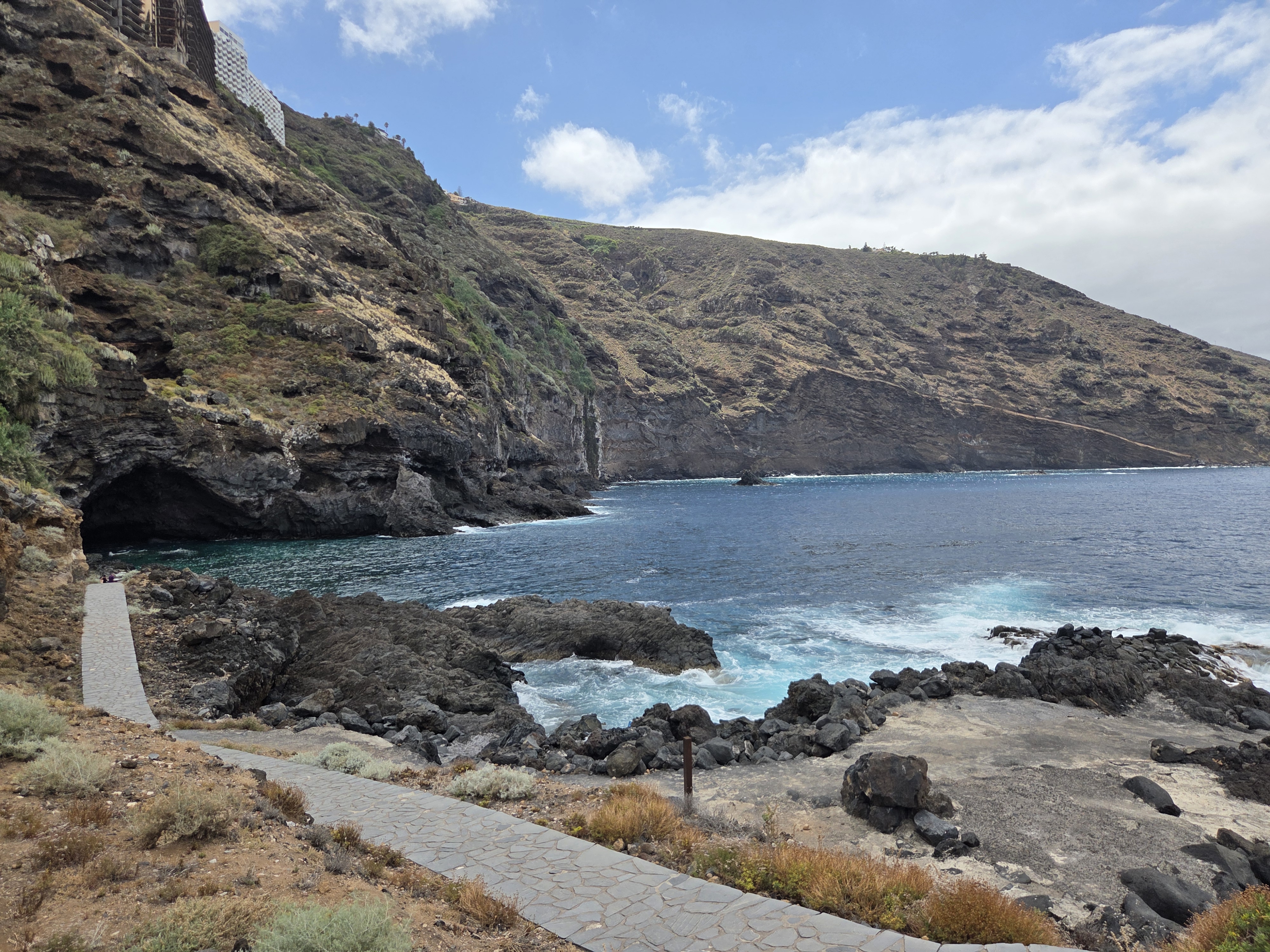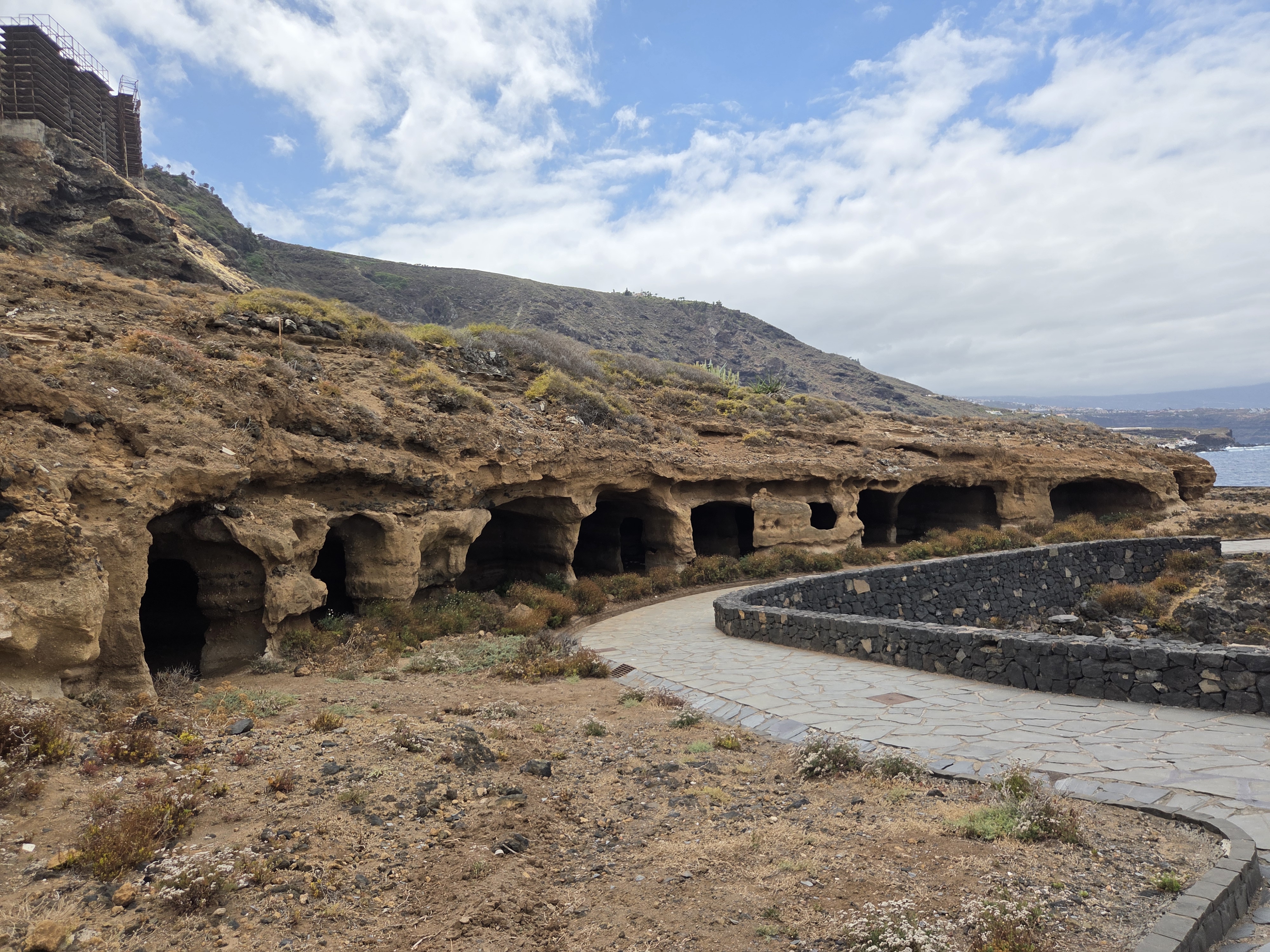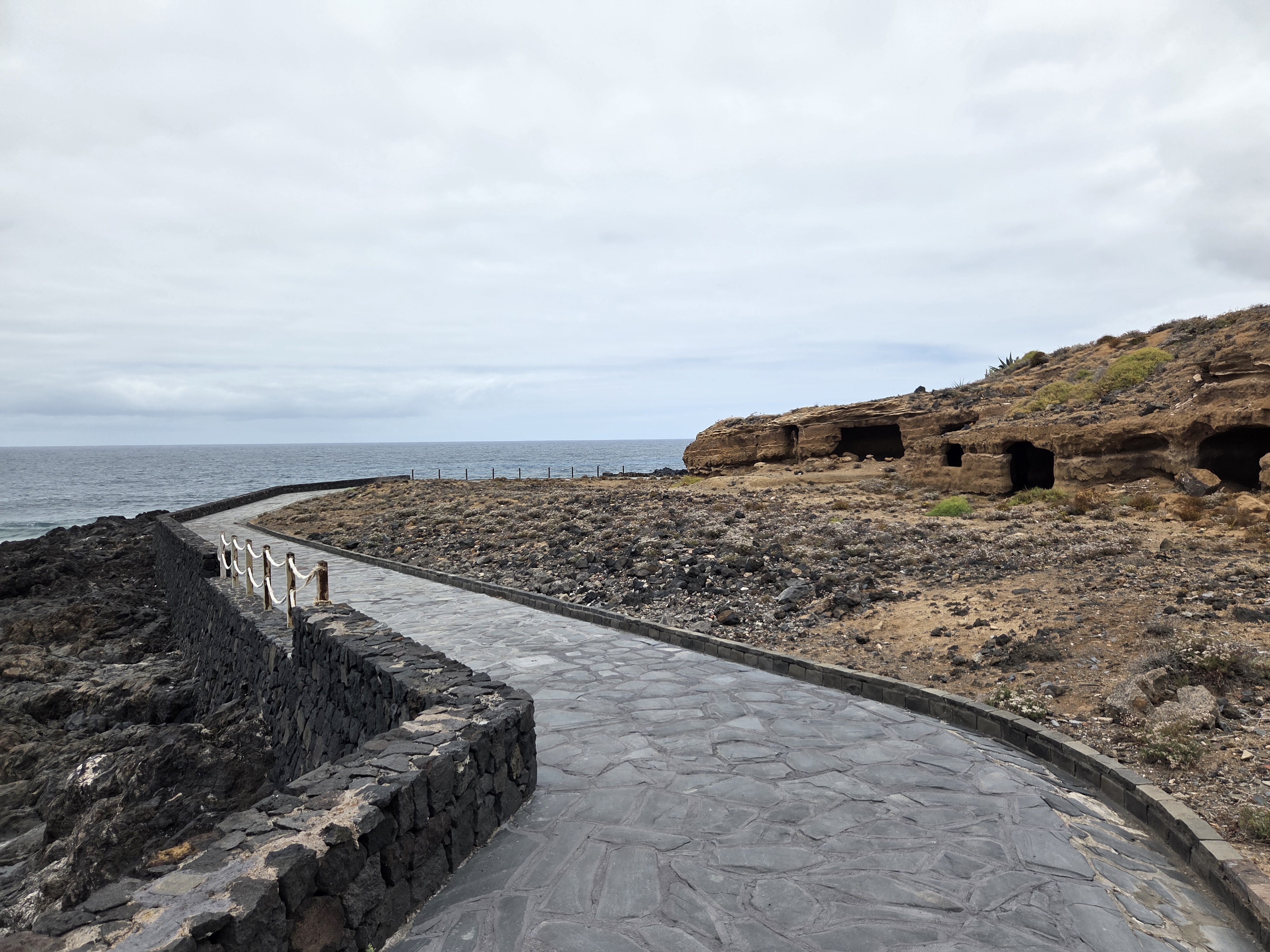 El paseo discurre paralelo a estas cuevas, un tramo fotogénico que muestra bien la geología costera de El Sauzal.