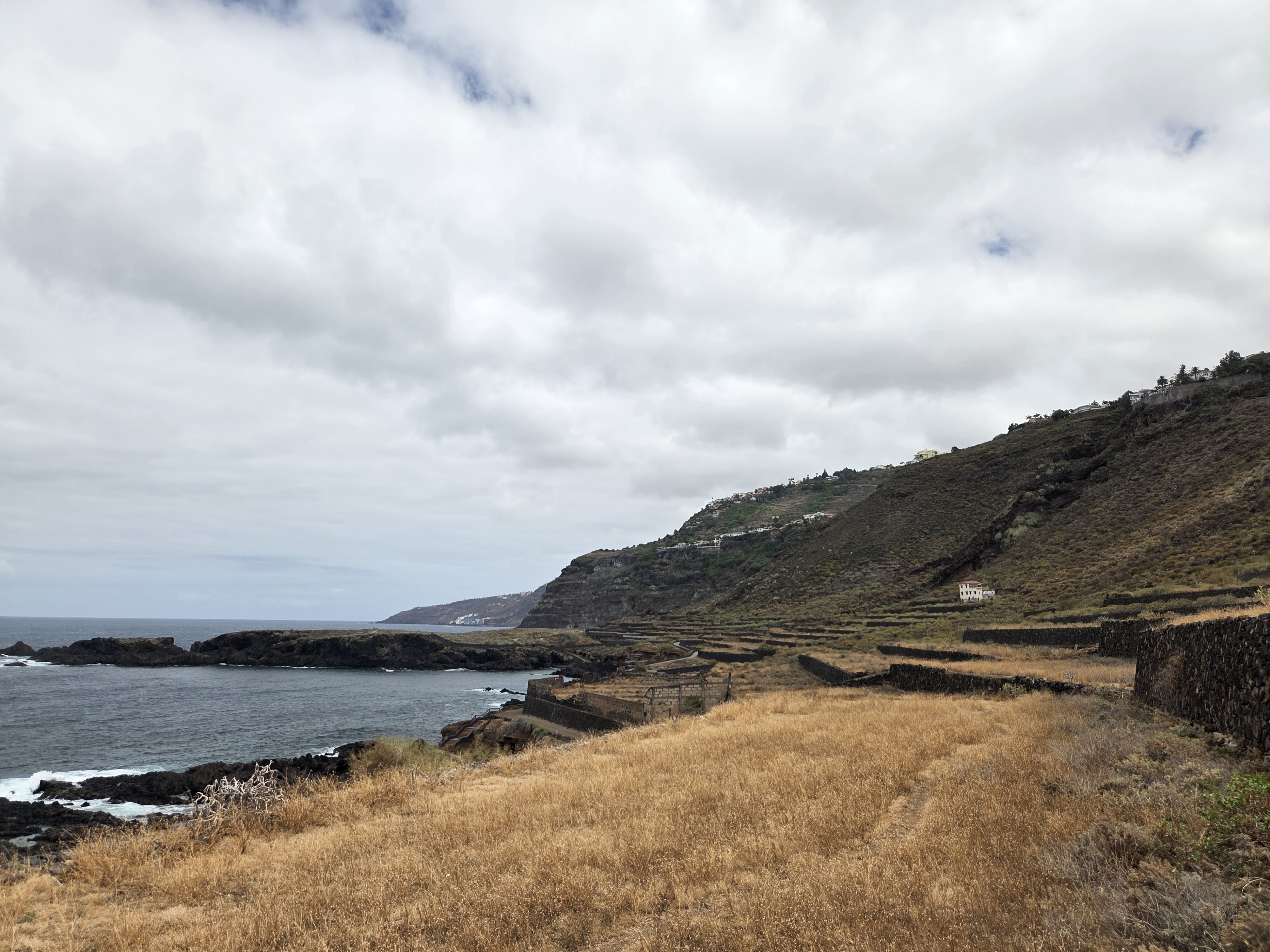Una panorámica inicial del litoral muestra los acantilados de origen volcánico y las costa labrada por el oleaje. Las antiguas terrazas agrícolas descienden hacia el mar y dan personalidad al paisaje.