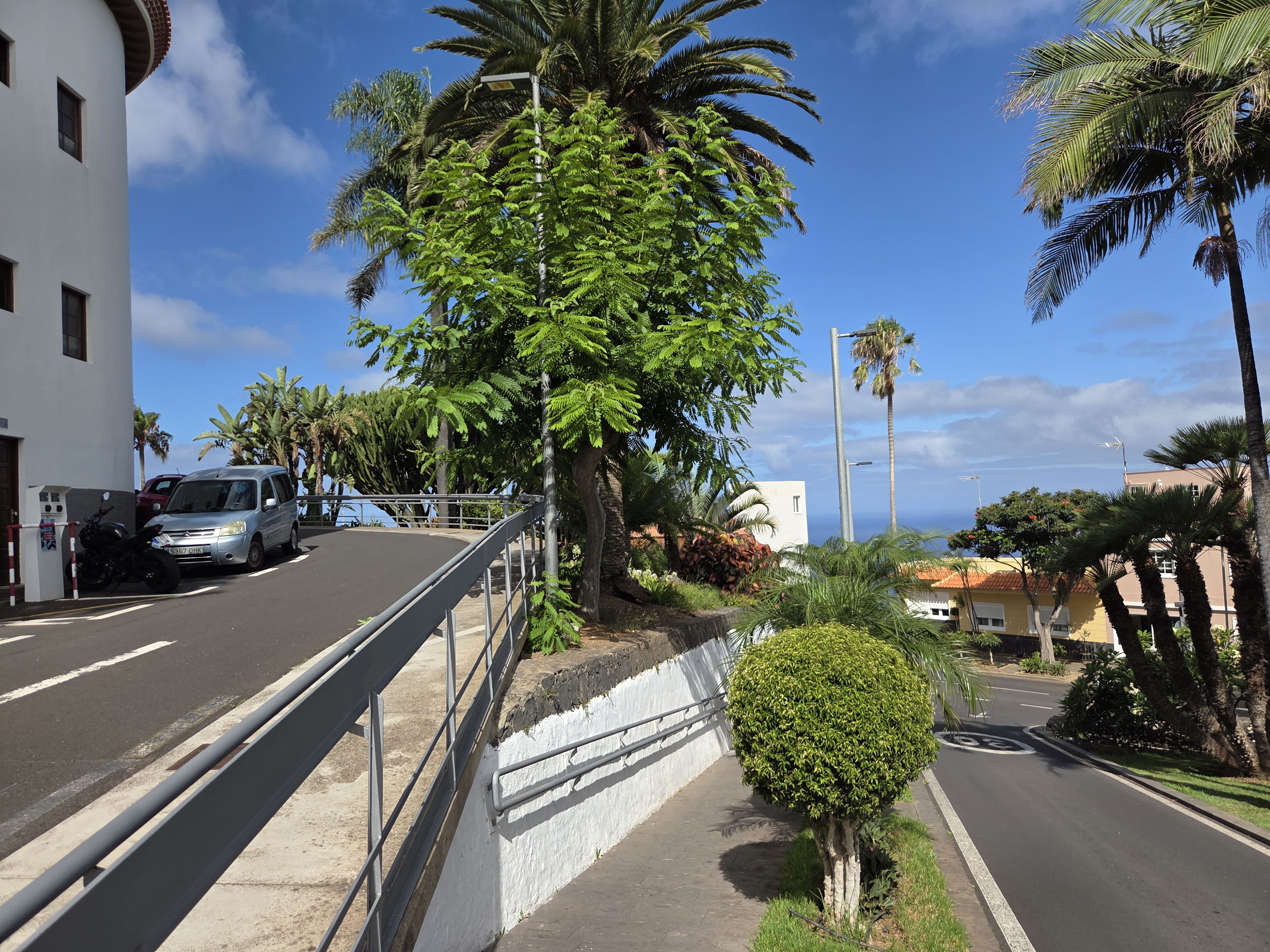 Entre los barrios residenciales abundan las vistas despejadas y las palmeras, reforzando el clima agradable del norte tinerfeño.