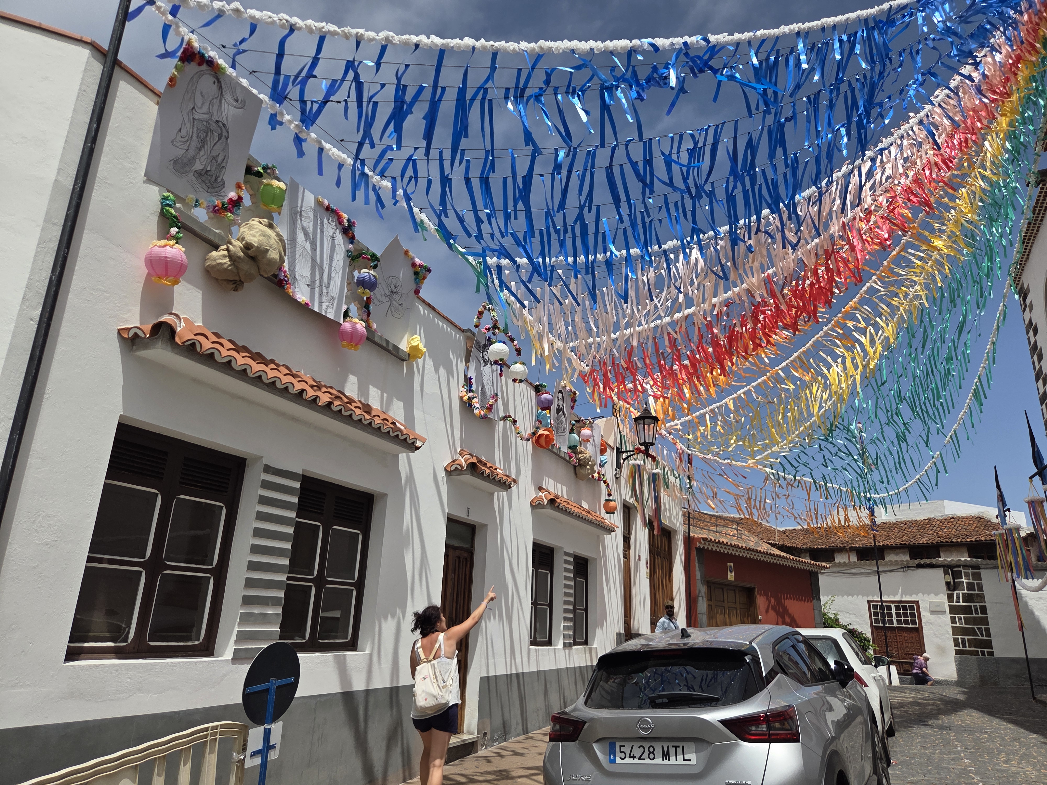 Las guirnaldas y cintas de colores cruzan los callejones y crean un ambiente alegre para pasear y fotografiar.