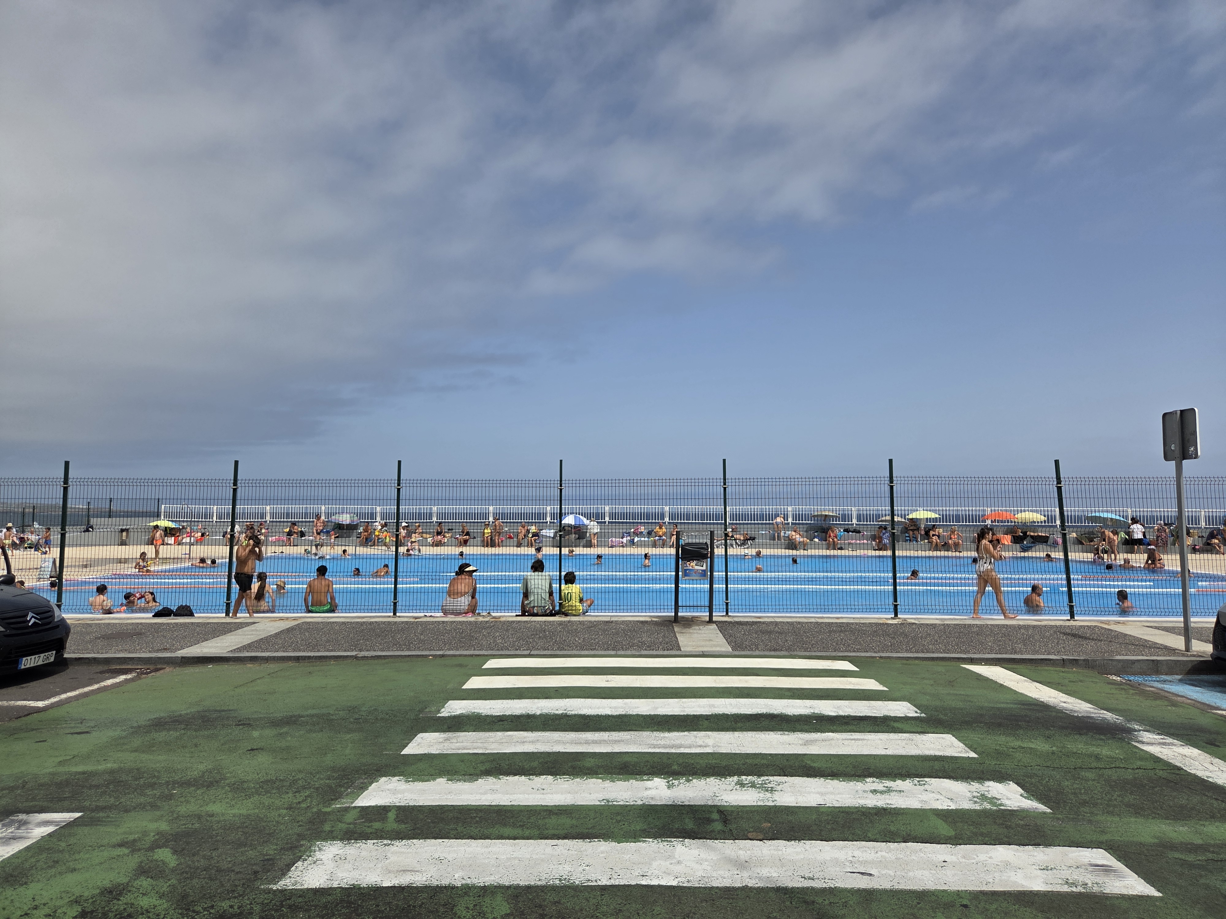 Como alternativa segura para familias, la piscina municipal junto al mar ofrece amplias láminas de agua y servicios.