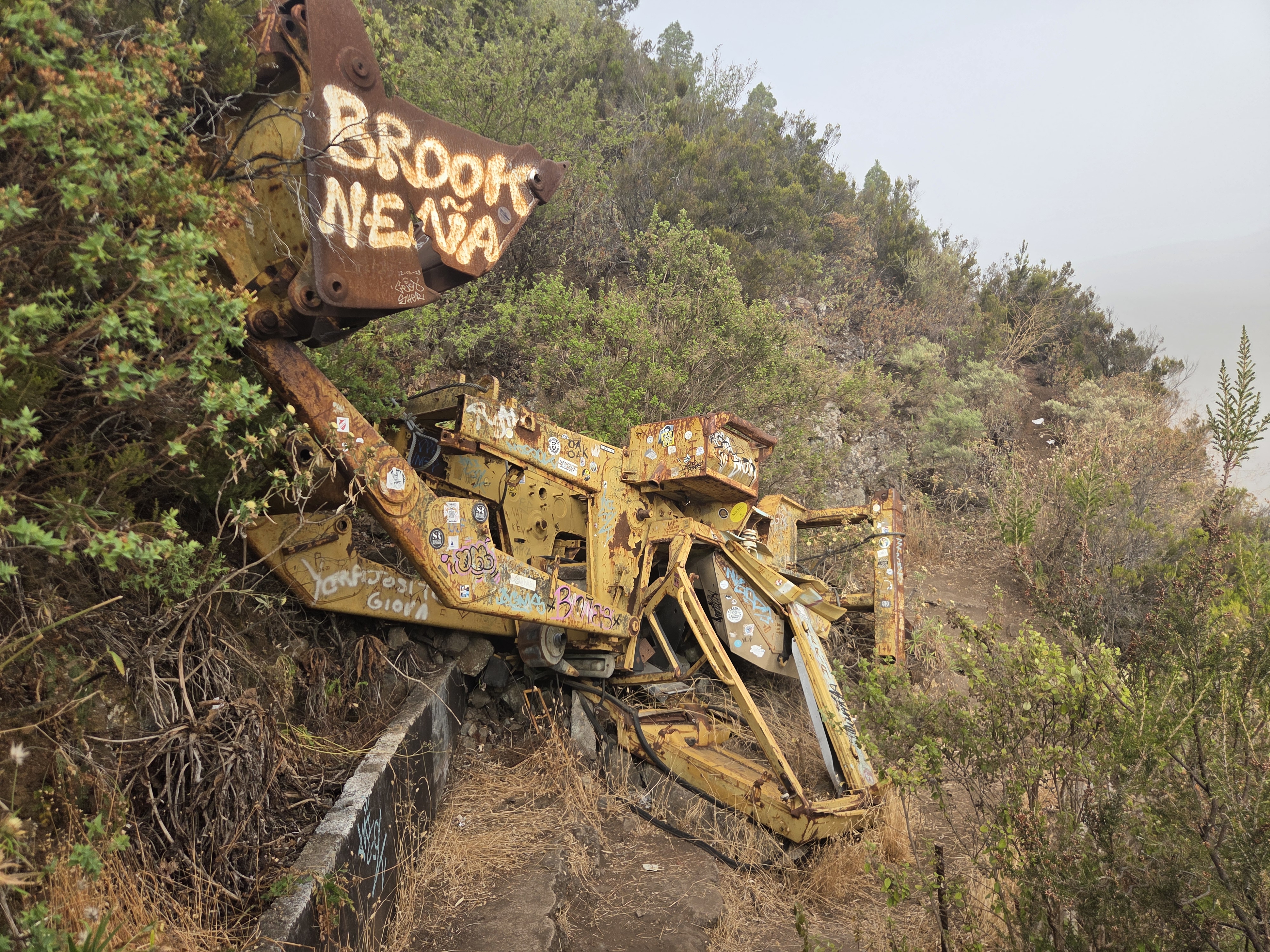 Como curiosidad, aparece una retroexcavadora oxidada, testimonio de antiguas labores de mantenimiento del canal.