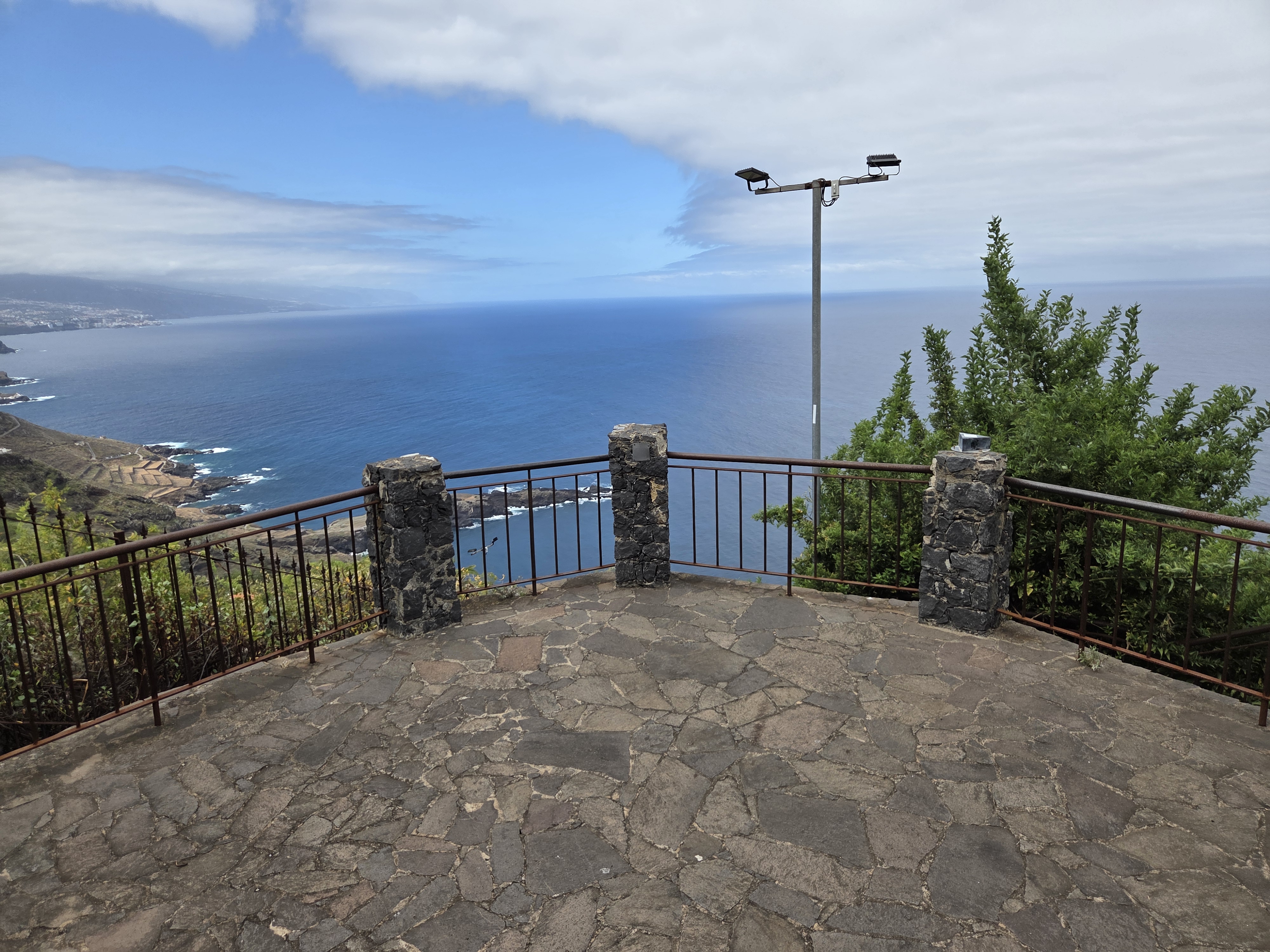 Las plataformas de observación, con barandillas de hierro y pilares de piedra, permiten detenerse a disfrutar del horizonte. Es un punto excelente para fotografías de costa, juegos de nubes y el azul del Atlántico.