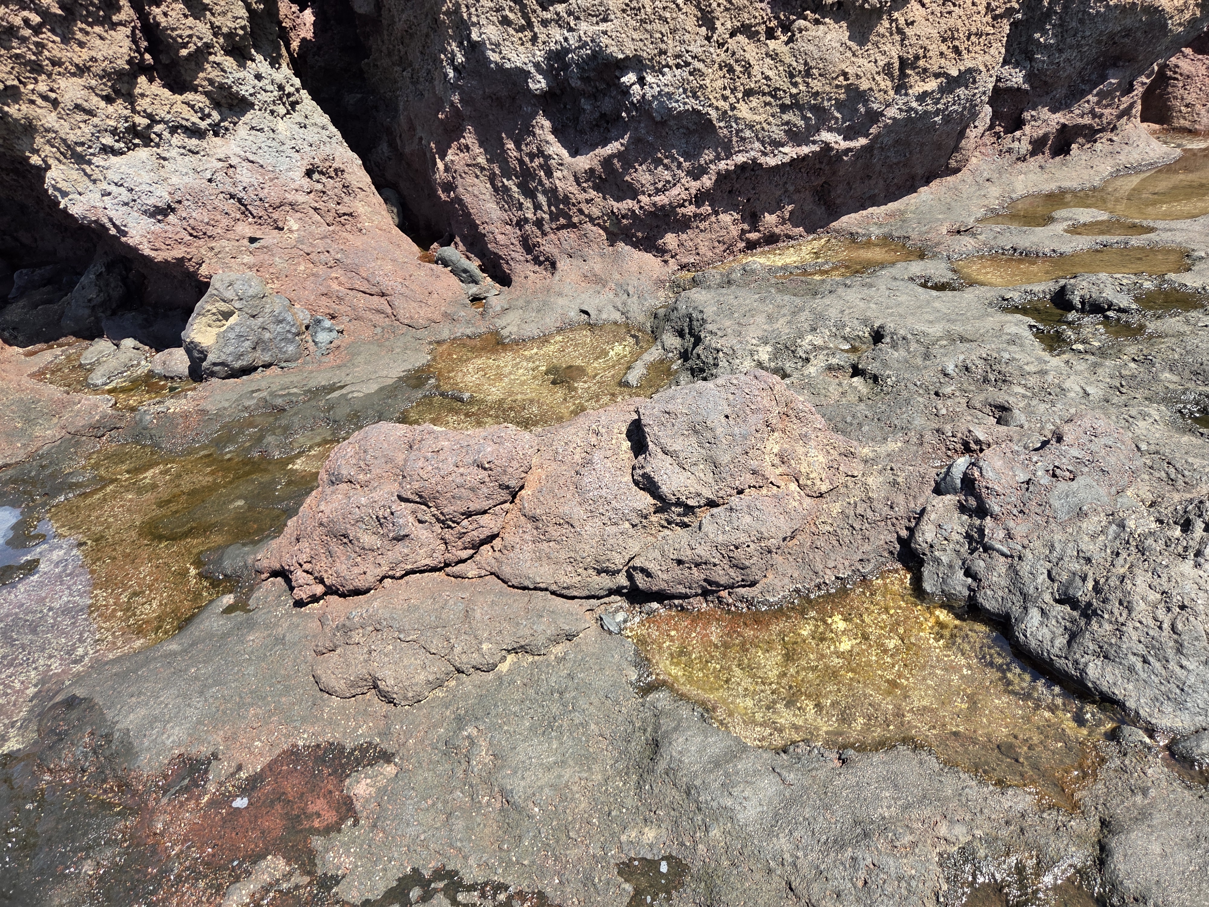 El conjunto de texturas y colores da mucho juego para la fotografía macro. Son zonas frágiles: conviene caminar por superficies estables y evitar pisar charcos con vida marina.