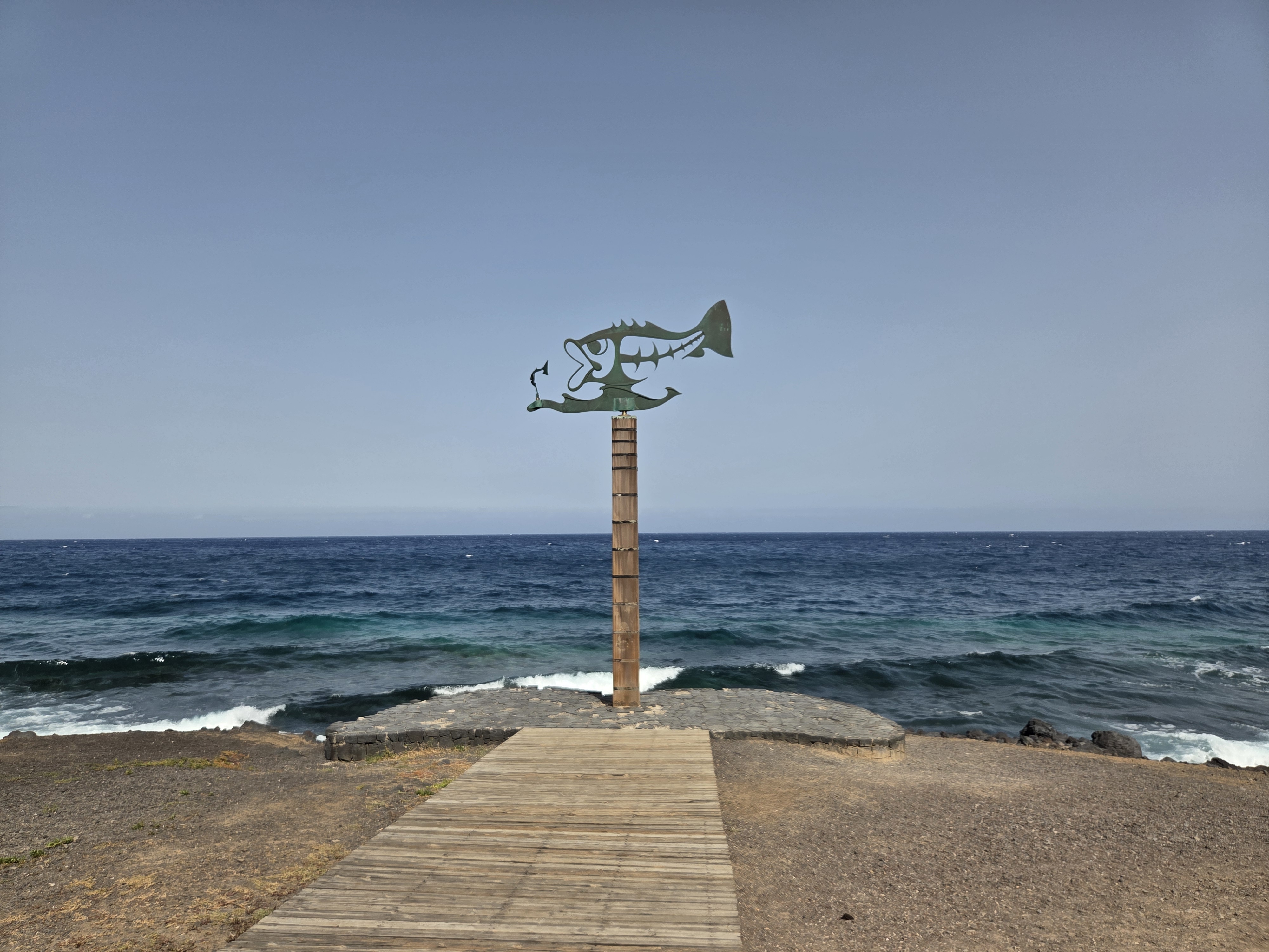 Este elemento artístico, recortado sobre el horizonte, se ha convertido en una referencia visual del paseo y un lugar perfecto para fotografías al atardecer con el océano de fondo.