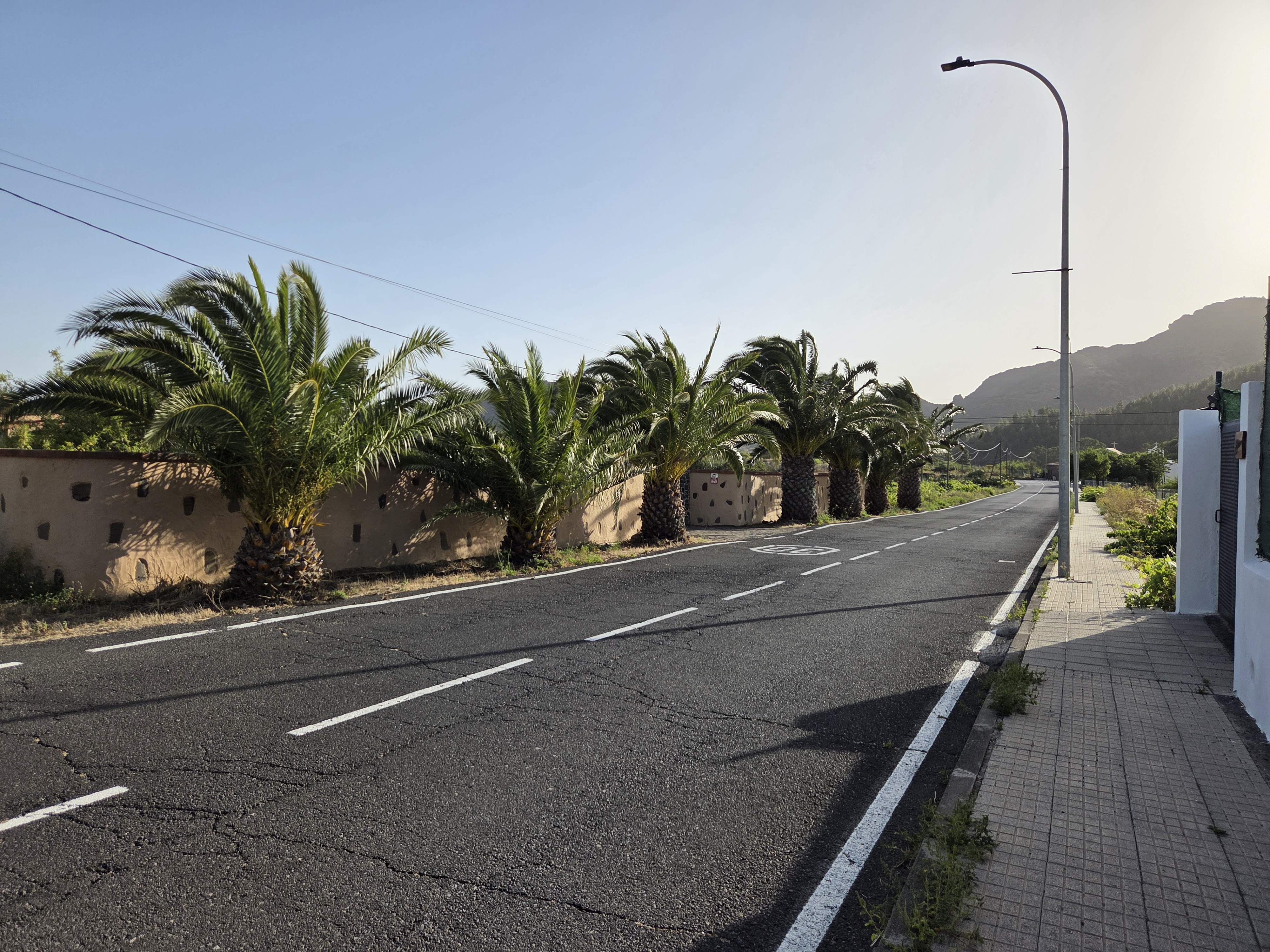 Las carreteras arboladas invitan a caminar con calma. Los muros de piedra y las palmeras marcan un trazado cómodo para moverse entre barrios y fincas.